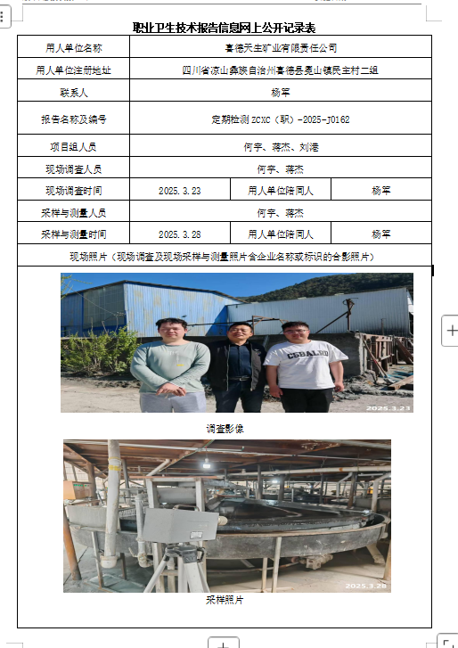 下一篇:宜宾本色精密工业有限公司职业病危害因素定期检测