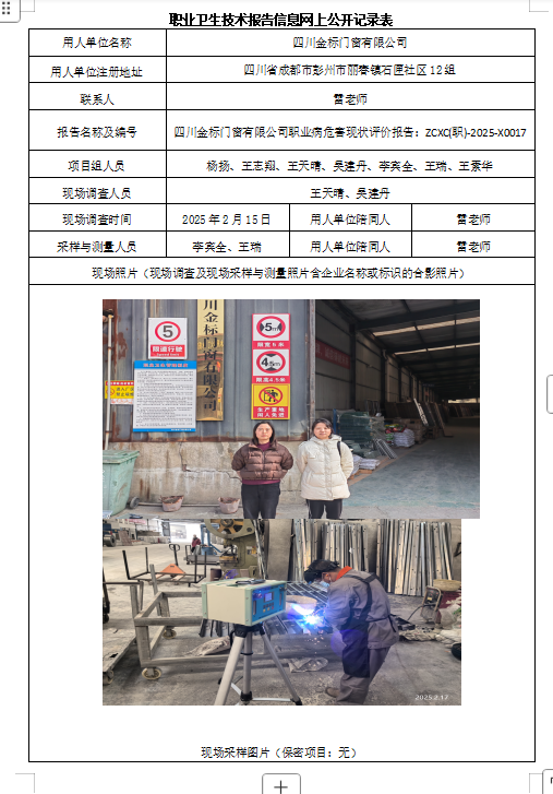 上一篇:成都金顶精密铸造有限公司职业病危害现状评价