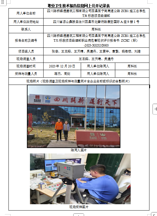 下一篇:四川路桥盛通建筑工程有限公司西昌至宁南高速公路ZCB1施工总承包TJ3标段项目经理部职业危害现状评价