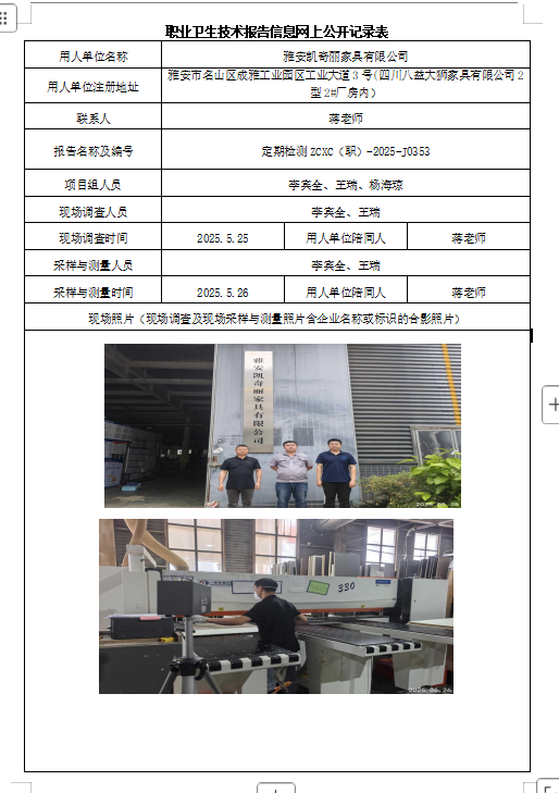 下一篇:彭州市三界镇颐佳粮食加工厂职业病危害因素定期检测