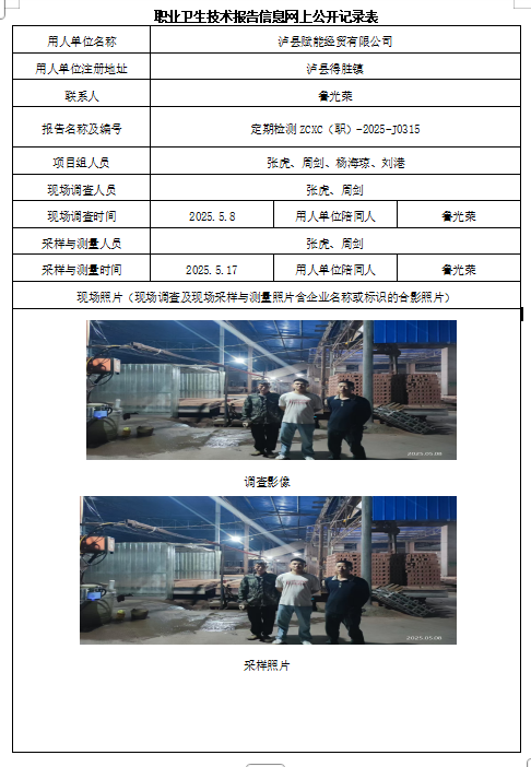 下一篇:绵竹云山环保新材料有限公司职业病危害因素定期检测
