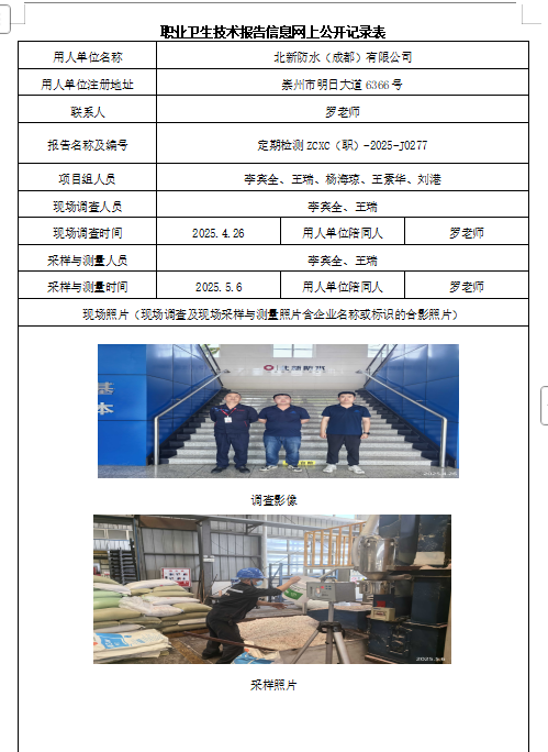 下一篇:四川优比贝柠科技有限公司职业病危害因素定期检测