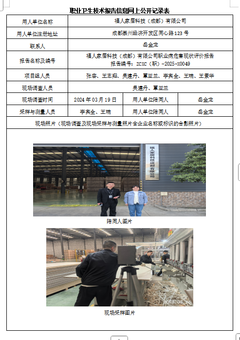 上一篇:福人家居科技(成都)有限公司新建人造板生产线项目(二期)职业病危害控制效果评价