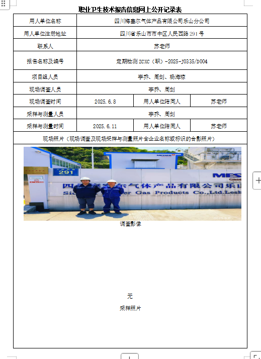 上一篇:四川梅塞尔气体产品有限公司职业病危害因素定期检测