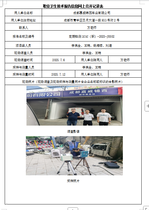 下一篇:四川华骄环保科技有限公司职业病危害因素定期检测