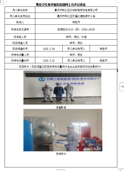 上一篇:重庆市巫山县青山头新能源有限公司职业病危害因素定期检测
