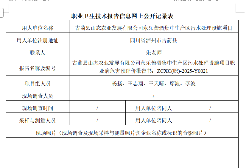 下一篇:古蔺县山态农业发展有限公司永乐酱酒集中生产区污水处理设施项目职业病防护设施设计专篇