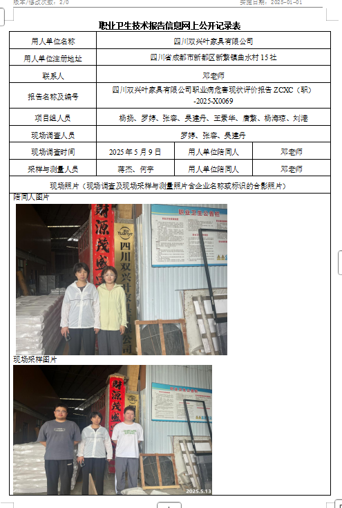 上一篇:成都市顺邦工贸有限公司职业病危害现状评价