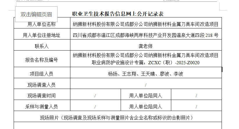 下一篇:纳狮新材料股份有限公司成都分公司纳狮新材料金属刀具车间改造项目职业病危害控制效果评价