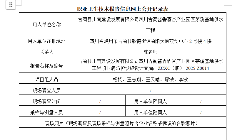 下一篇:古蔺县川南建设发展有限公司四川古蔺酱香酒谷产业园区茅溪基地供水工程职业病危害预评价