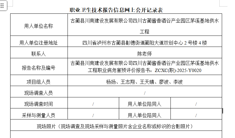 下一篇:古蔺县川南建设发展有限公司四川古蔺县茅溪酱酒园区集中供热项目(第一期)职业病危害预评价