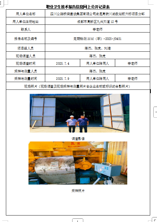下一篇:四川省威远特种耐火材料有限公司职业病危害因素定期检测