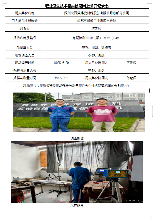 下一篇:四川千涂汇新材料有限公司职业病危害因素定期检测