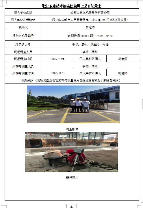 下一篇:四川鑫进机械制造有限公司职业病危害因素定期检测