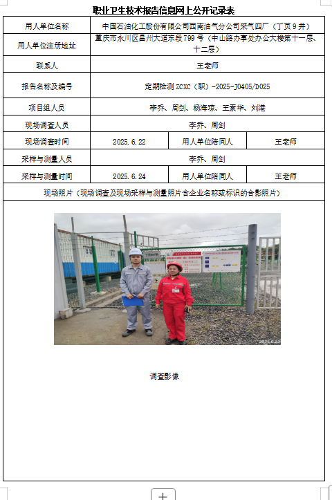 下一篇:中国石油化工股份有限公司西南油气分公司采气四厂(丁页8井)职业病危害因素定期检测