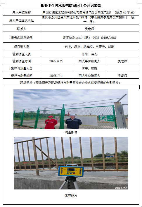 下一篇:中国石油化工股份有限公司西南油气分公司采气四厂(威页43平台)职业病危害因素定期检测