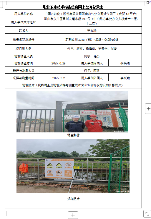 上一篇:中国石油化工股份有限公司西南油气分公司采气四厂(威页46平台)职业病危害因素定期检测