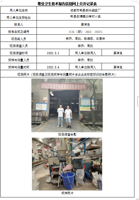 下一篇:成都华堰机械设备有限责任公司职业病危害因素定期检测
