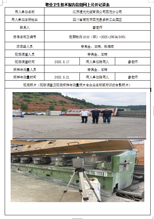 上一篇:四川通光线缆有限公司职业病危害因素定期检测
