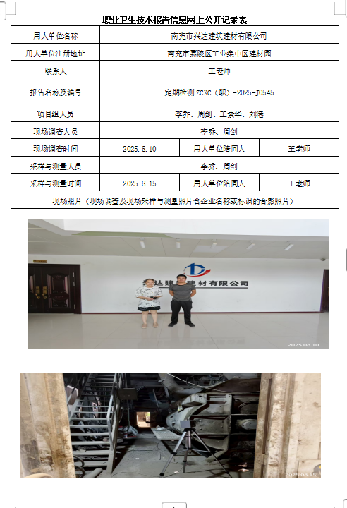 下一篇:中节能安岳清洁技术发展有限公司职业病危害因素定期检测