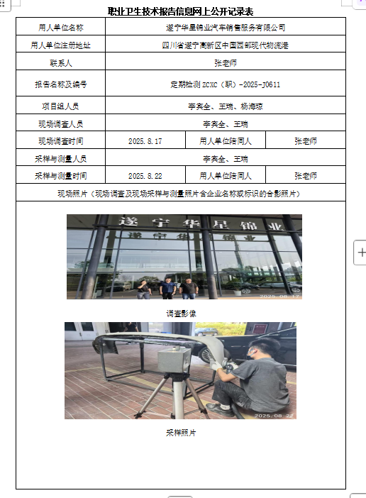 上一篇:威远县大禾陶瓷原料有限公司职业病危害因素定期检测