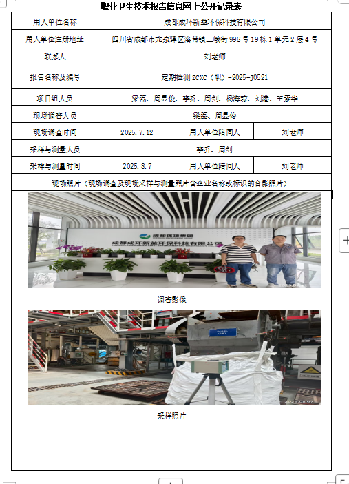 下一篇:四川久凌制药科技有限公司(新厂)职业病危害因素定期检测