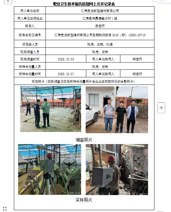 下一篇:仁寿县珠加乡兴旺机砖厂职业病危害因素定期检测