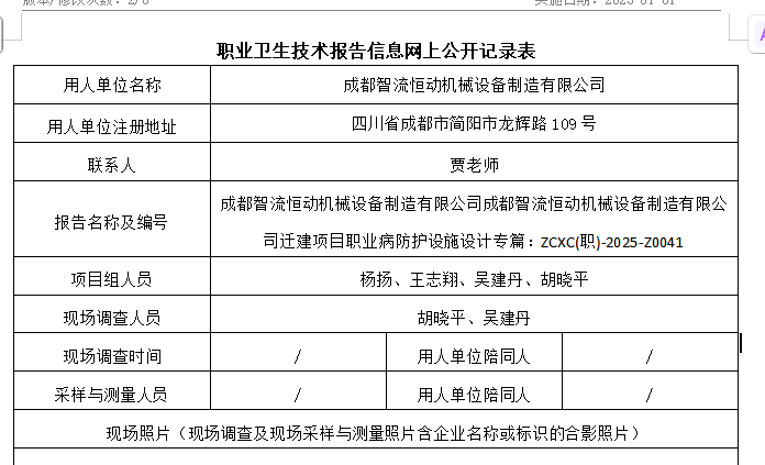 上一篇:成都智流恒动机械设备制造有限公司建项目职业病危害预评价报告