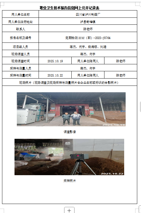 上一篇:泸州江泉纯酿酒厂职业病危害因素定期检测