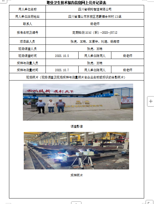 上一篇:成都川康铸锻有限责任公司职业病危害因素定期检测