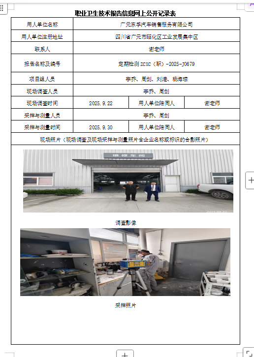 下一篇:井研县周坡镇金鱼机砖厂职业病危害因素定期检测