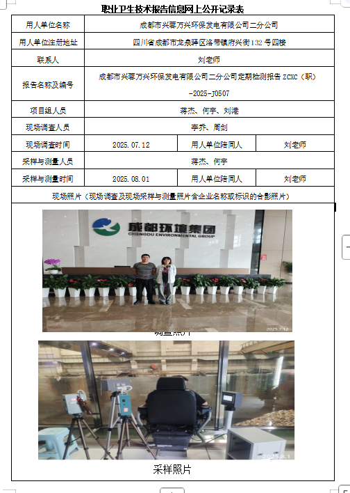 下一篇:成都洋湃科技有限公司职业病危害因素定期检测