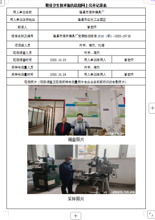 上一篇:广安天宇方木业有限公司职业病危害因素定期检测