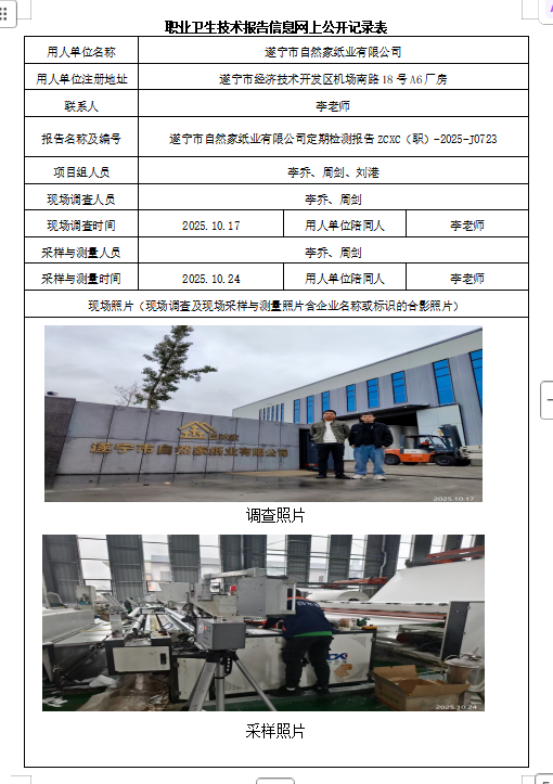 下一篇:武胜县久泰砂石有限公司职业病危害因素定期检测