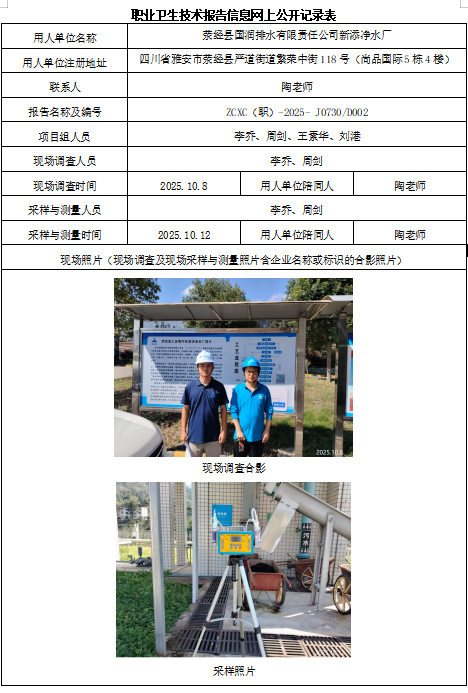 下一篇:荥经县国润排水有限责任公司烈太水厂职业病危害因素定期检测