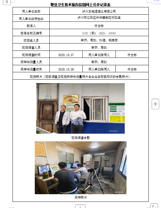 下一篇:泸州鑫鑫混凝土工程有限公司职业病危害因素定期检测