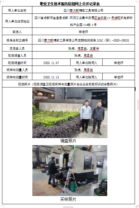 上一篇:四川华川基业建设集团珑威容器制造有限公司职业病危害因素定期检测