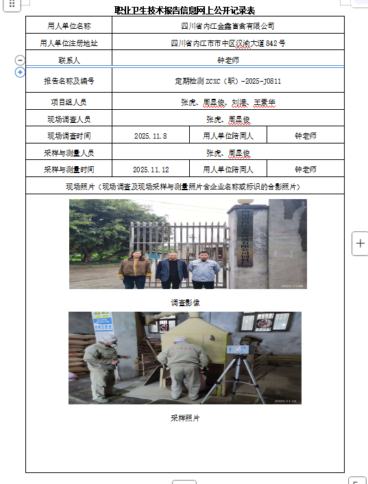 下一篇:四川省内江旭源机床有限公司职业病危害因素定期检测