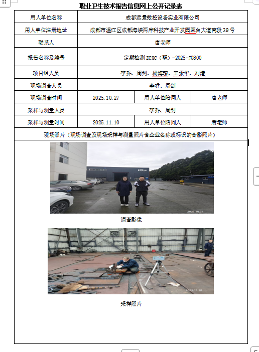 下一篇:四川政展金属制品有限公司职业病危害因素定期检测