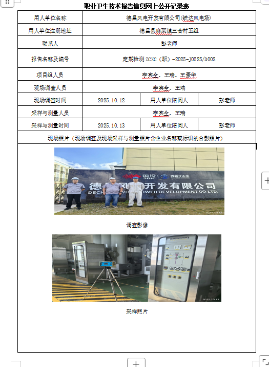 下一篇:德昌风电开发有限公司(德昌风电场)职业病危害因素定期检测