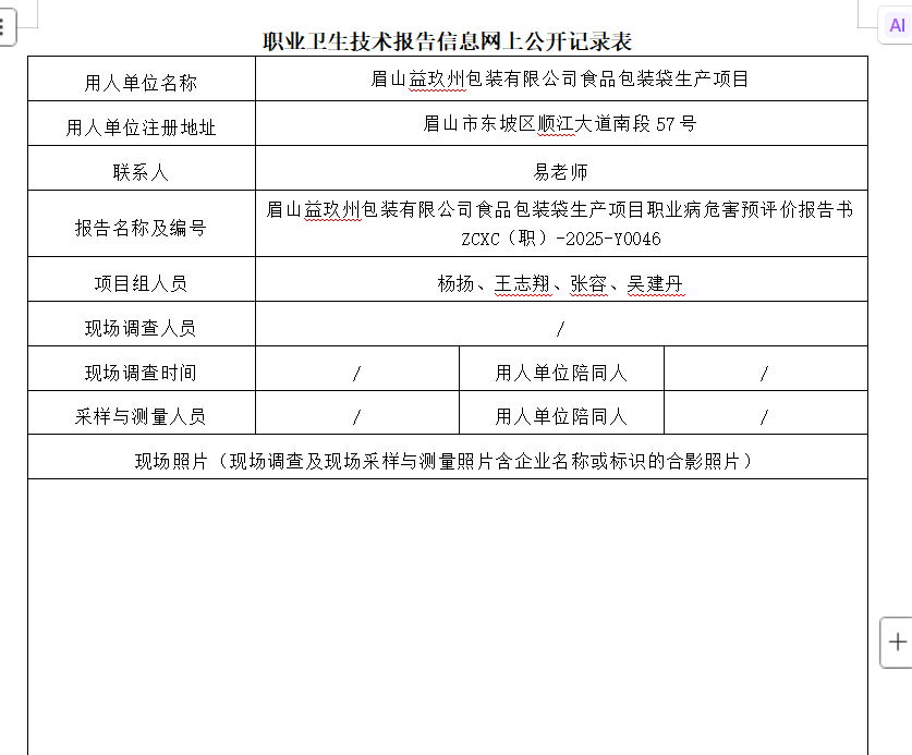 下一篇:眉山益玖州包装有限公司食品包装袋生产项目职业病危害设施设计专篇