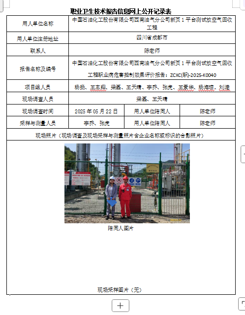 下一篇:中石化西南油气分公司(油气销售中心)新场-彭州输气管道安全隐患治理项目职业病危害预评价