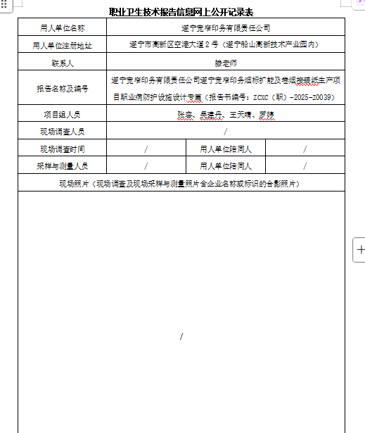 上一篇:遂宁宽窄印务有限责任公司遂宁宽窄印务烟标扩能及卷烟接装纸生产项目职业病危害预评价
