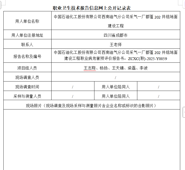 下一篇:中石化西南油气分公司采气一厂都蓬201井组地面建设工程职业病危害预评价