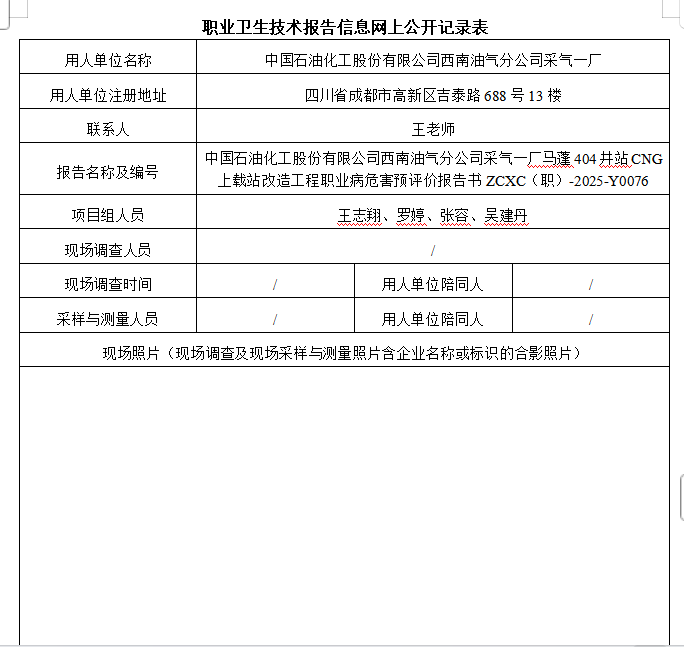 下一篇:中石化西南油气分公司采气一厂都蓬304井组地面建设工程职业病危害预评价