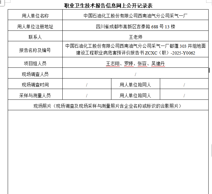 下一篇:中石化西南油气分公司采气一厂都蓬302井组地面建设工程职业病危害预评价