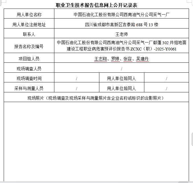 下一篇:中石化西南油气分公司采气一厂都蓬301井组地面建设工程职业病危害预评价