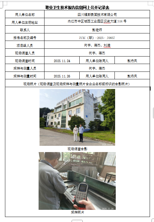 上一篇:四川和盛鞋业有限公司职业病危害因素定期检测