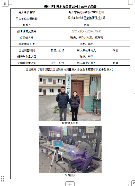 下一篇:彭州隆升家具厂职业病危害因素定期检测