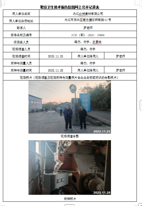 下一篇:内江市欣永利建材有限公司职业病危害因素定期检测